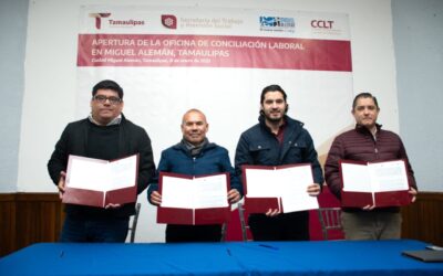 Enero 10 de 2025 Miguel Alemán, Tamaulipas.- Con la finalidad de acercar la justicia laboral, fue inaugurada la Oficina Regional del Centro de Conciliación Laboral en el municipio de Miguel Alemán, cuya apertura estuvo a cargo de Luis Gerardo Illoldi Reyes, secretario del Trabajo y Previsión Social en Tamaulipas, y del director general del Centro…