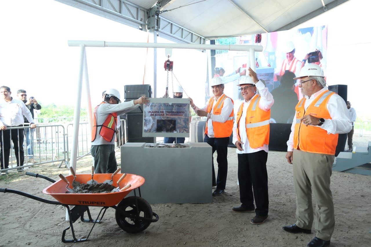 Altamira, Tamaulipas. – Tamaulipas es el segundo estado a nivel nacional con mayor inversión para el manejo sustentable del agua, afirmó el gobernador Américo Villarreal Anaya, al poner la primera piedra de la Planta Tratadora de Aguas Residuales (PTAR) «La Pedrera», en el municipio de Altamira.