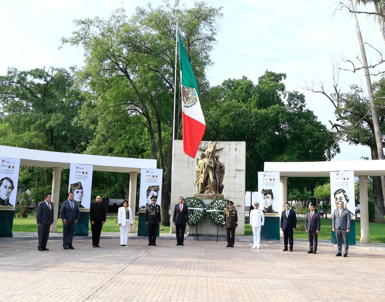 Para finalizar, el gobernador y las autoridades presentes depositaron una ofrenda floral y montaron guardia de honor al pie del monumento a los Niños Héroes.