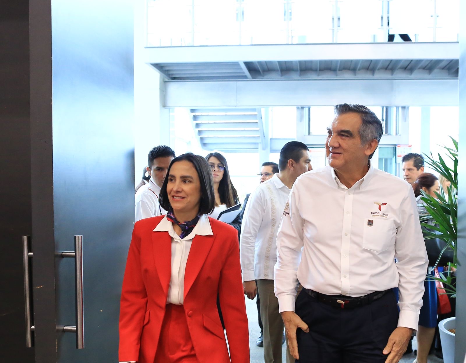 La secretaria de Energía, Luz Elena González Escobar, junto con el gobernador de Tamaulipas, Américo Villarreal Anaya, y la alcaldesa de Tampico, Mónica Villarreal Anaya inauguraron este espacio de diálogo abierto y plural, donde los sectores social, empresarial y académico aportaron propuestas en mesas de trabajo para que, en conjunto con el gobierno, se consolide la soberanía energética en beneficio a todas y todos.